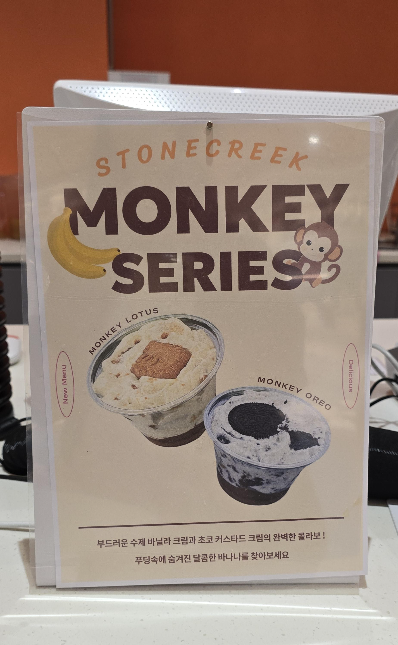 저는 바닐라 크림을 베이스로 한 몽키 로투스를 먹어 봤는데, 로투스와 크림, 약간의 초콜릿, 바나나가 적절히 어우러져서 많지 달지 않으면서도 정말 맛있었습니다.
