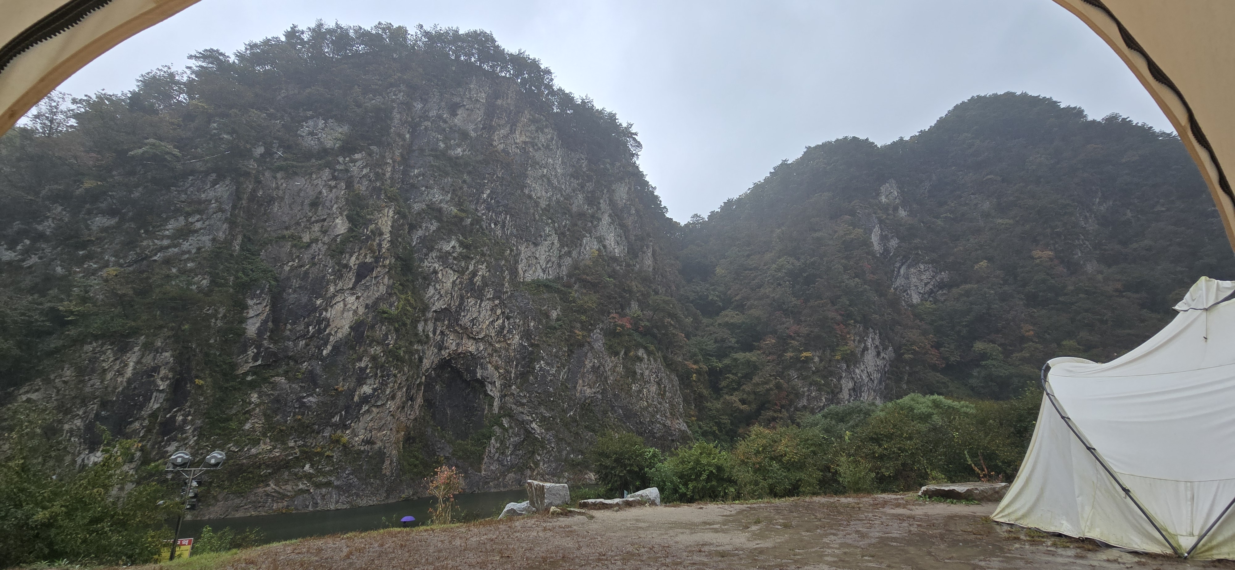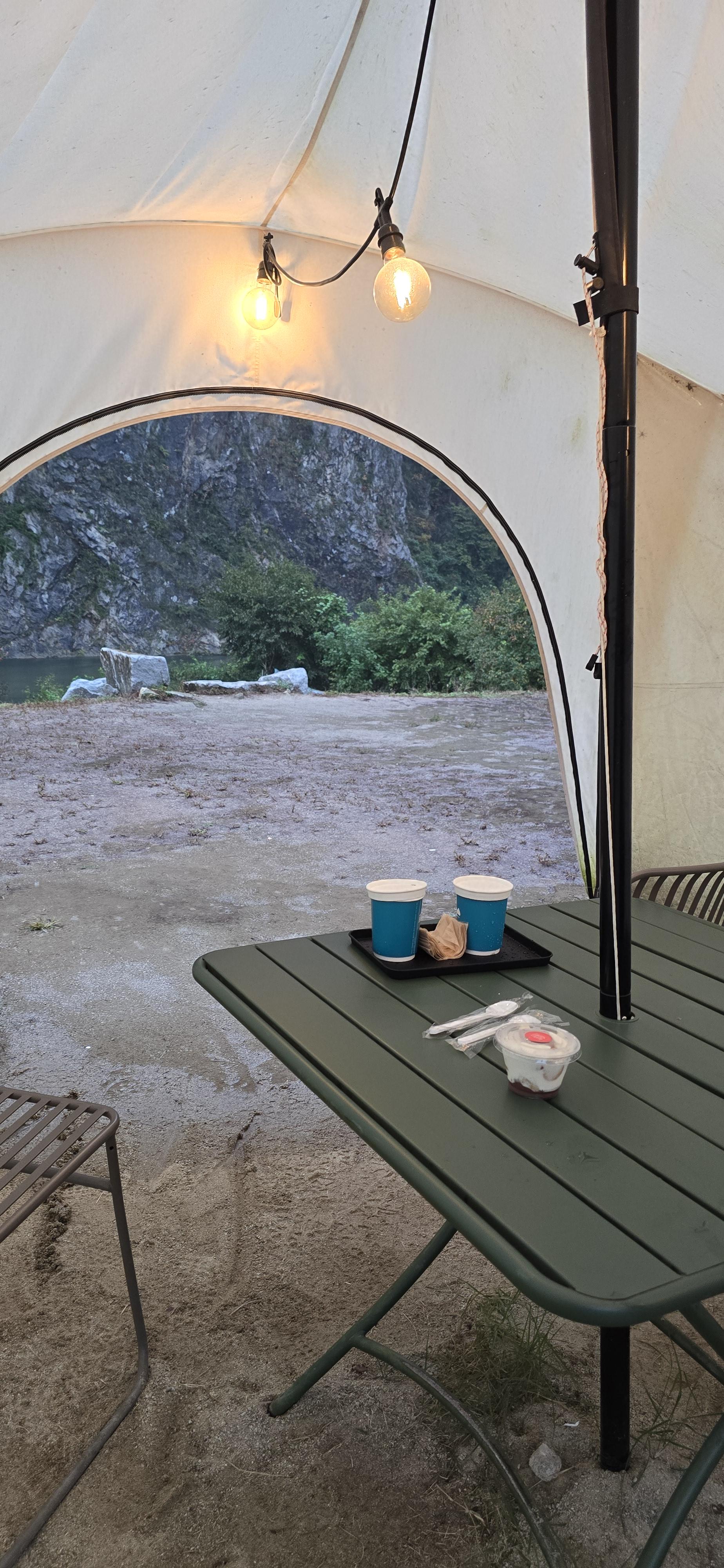 저는 가장 왼쪽에 있는 쉘터에 앉았는데, 천장에 떨어지는 빗소리를 들으면서 절벽를 바라보며, 커피를 마시는 시간이 정말 완벽했습니다.