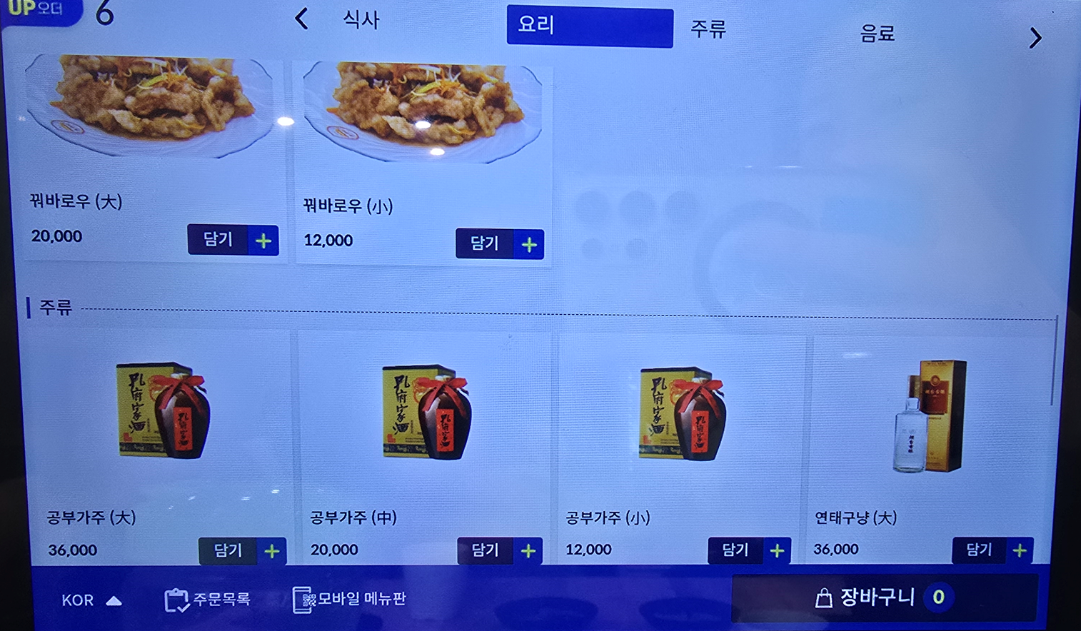 동승루는 만두가 유명해서 메뉴가 만두, 식사, 요리로 구분되어 있습니다.