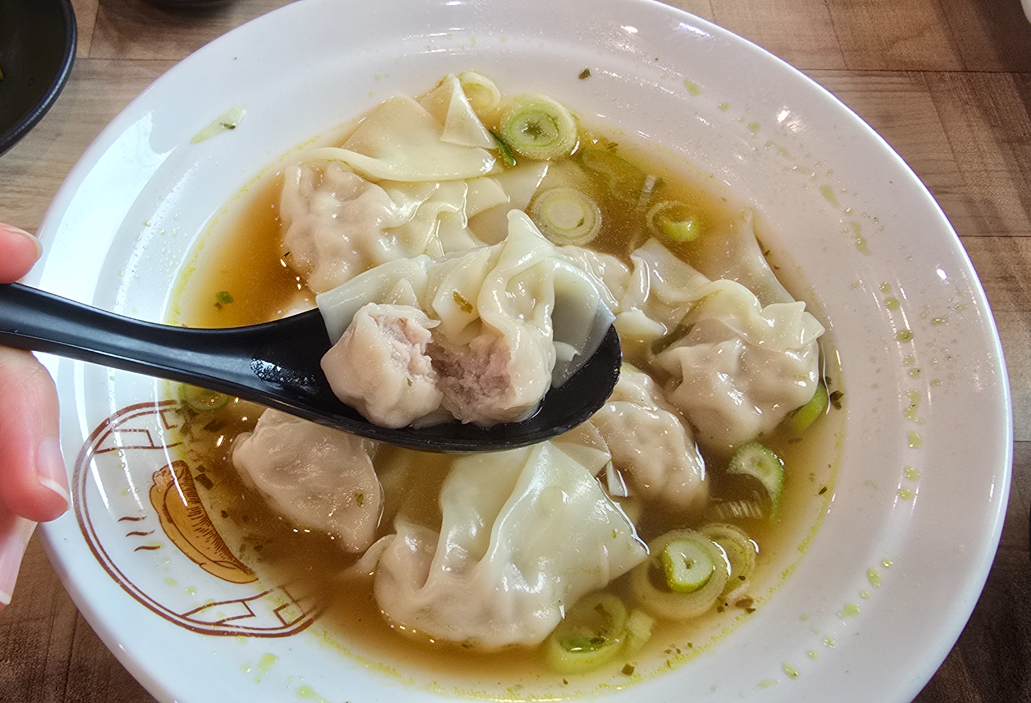 완탕에 들어간 만두는 채소 없이 고기만 들어 있는데도, 신맛 도는 국물과 어우러져서 느끼하거나 물리지 않고 정말 맛있었습니다.