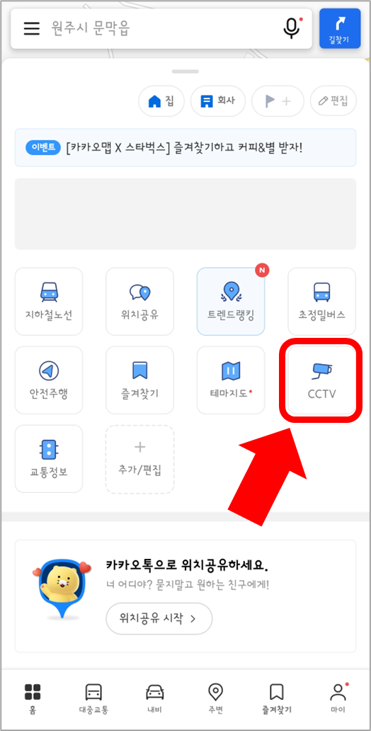 카카오맵에서 CCTV 보기를 설정한 뒤,