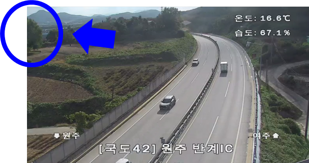 그럼 아래와 같은 CCTV 화면에서 왼쪽 위 구석에 잡힌 반계리 은행나무를 확인할 수 있습니다.
