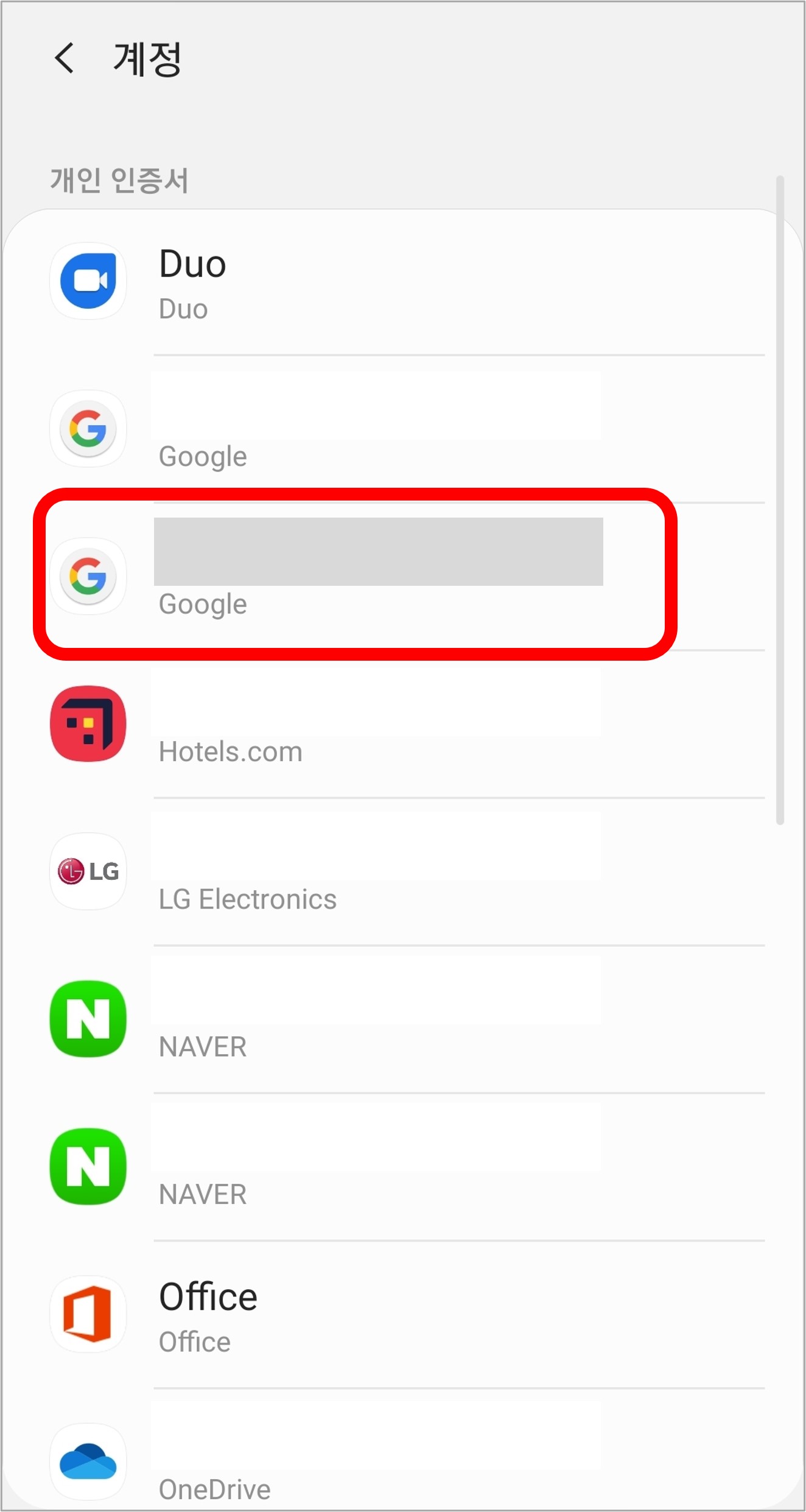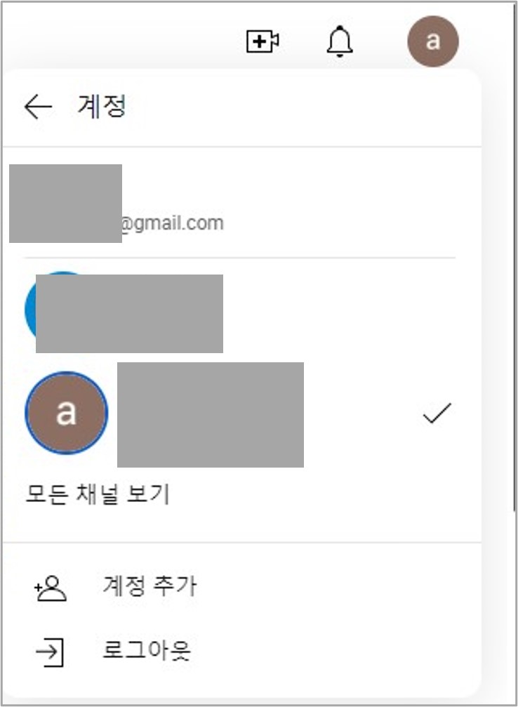 3. 휴대폰에 로그인된 계정 목록 중에서 채널 삭제를 원하는 구글 계정을 선택합니다.