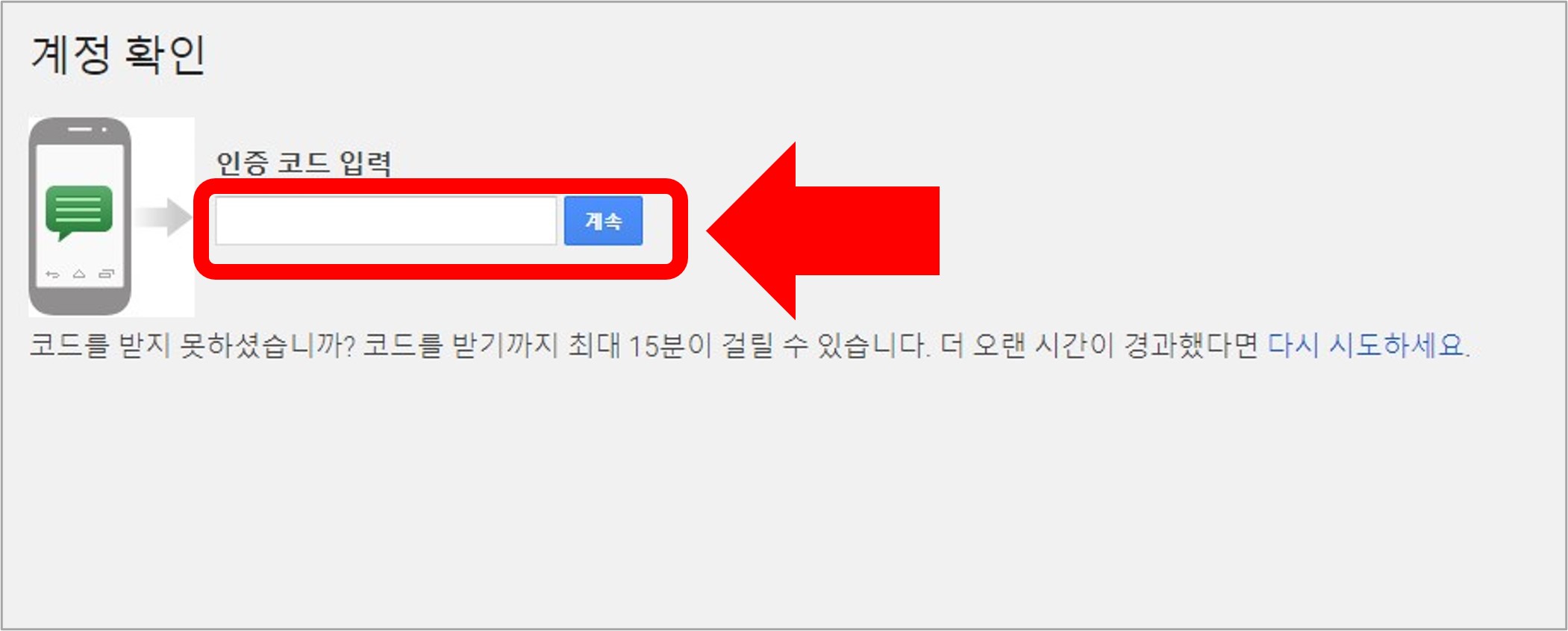 6. 문자메시지 인증코드를 입력해서 계정 인증 절차를 거칩니다.