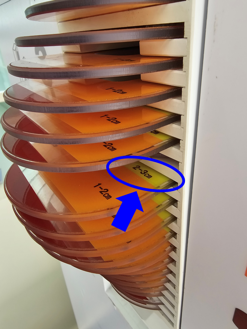 경추측정기에 앉아서 원판이 들어가 깊이를 확인하면 본인의 경추 깊이를 알 수 있습니다. 저는 2~3cm가 나왔습니다.