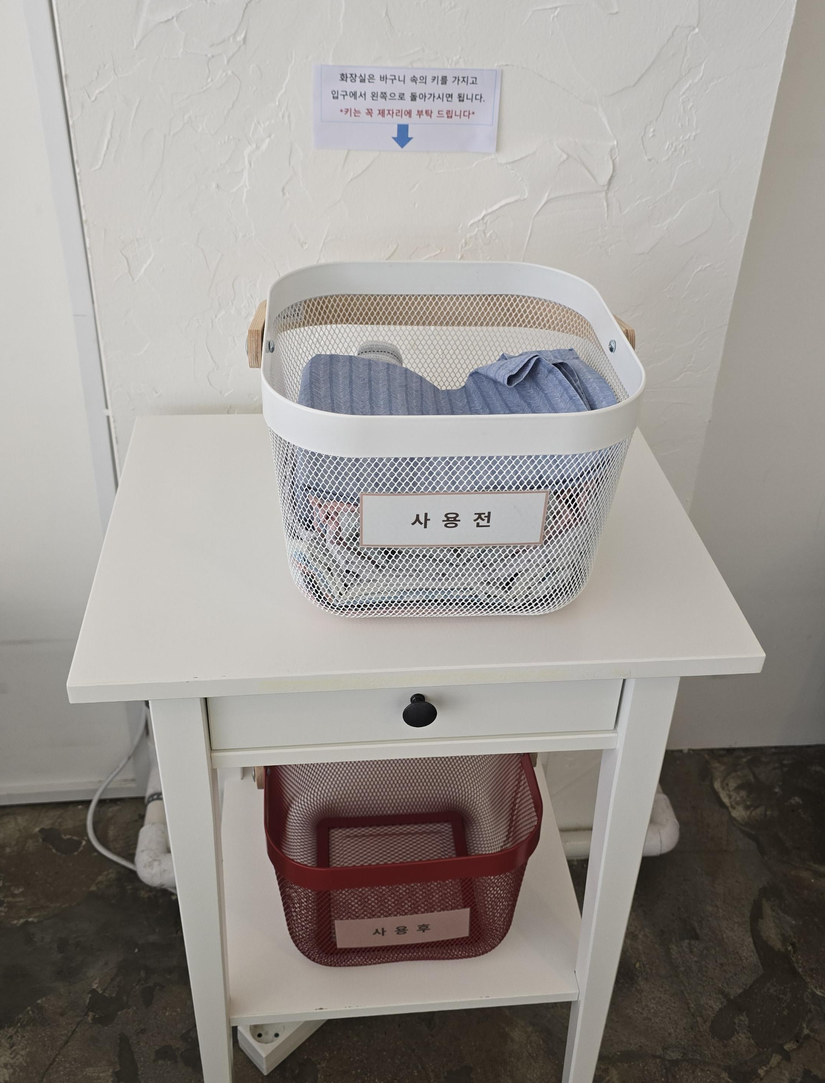 베개를 체험할 때는 이 바구니 안에 있는 베개커버를 이용하시면 됩니다.