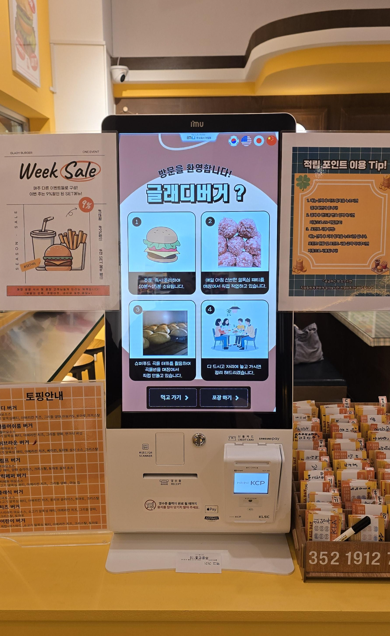 주믄은 입구 옆에 있는 키오스크로 할 수 있습니다.