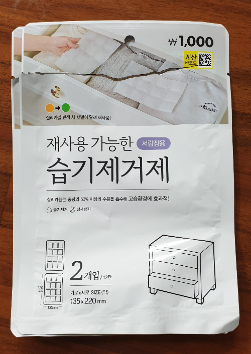 아, 이불을 수납함에 넣을 때는 제습제도 같이 넣어 주시면 좋습니다. 저는 다이소에서 구입한 서랍장용 제습제를 한개씩 넣어 주었습니다.