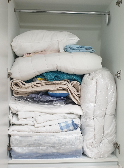 그래서 몇 주에 걸쳐서 이불을 몽땅 새로 세탁했는데요. 세탁하고 보니 이불장에 다시 넣기가 겁이 났습니다. 혹시나 내년 여름에 습해지면 먼지다듬이가 다시 생겨서 이 고생을 또 할까 싶어서요.