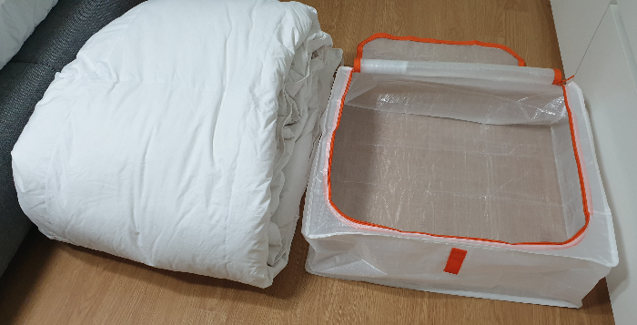 그래서 이불에 벌레가 침입하지 못하도록 밀봉해서 보관하고 싶어서 이것저것 찾아보다가 생각해 낸 게 이케아 페르클라였습니다. 지난겨울에 패딩 정리용으로 유용하게 사용했던 적이 있었거든요.