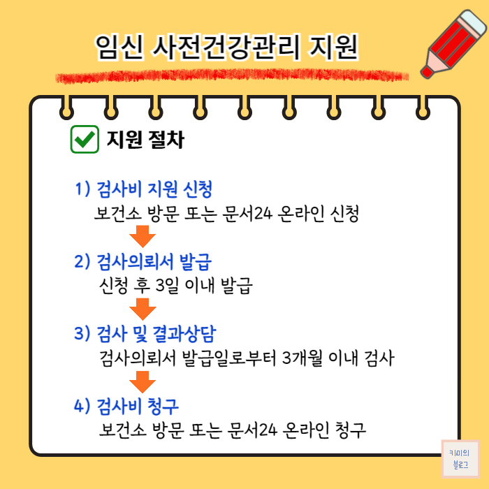 임신 사전건강관리 지원 비용은 보건소 방문 신청 또는 문서24 사이트에서 온라인 신청이 가능합니다.