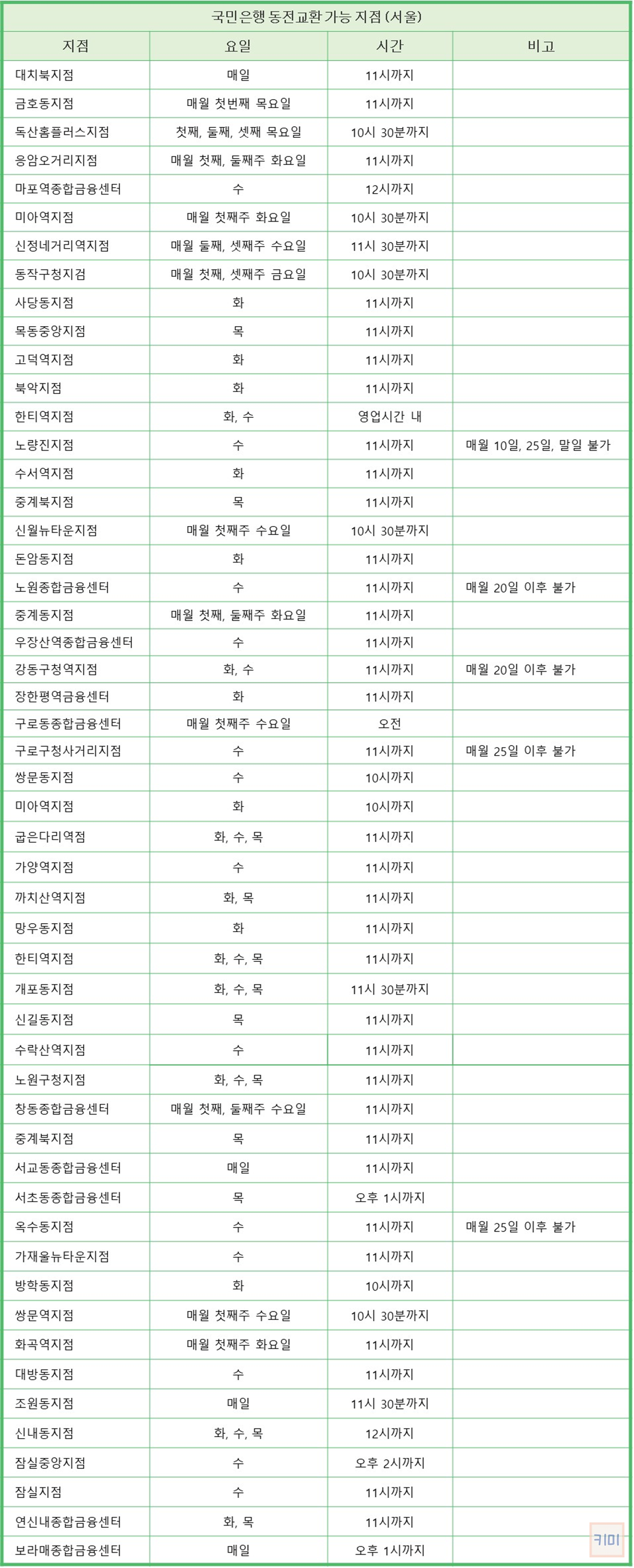 1. 서울 지역 국민은행 동전교환 상세 정보