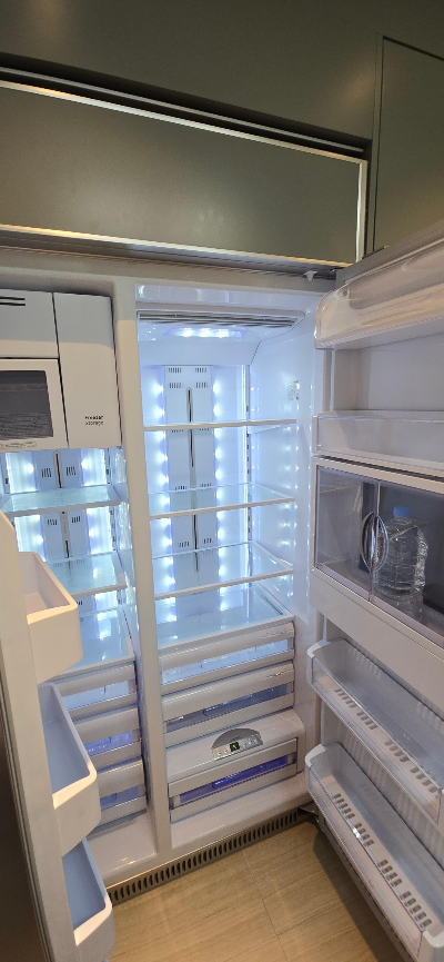 주방 안쪽을 살펴보고 깜짝 놀랐는데요. 대형 냉장고, 가스레인지, 오븐, 전기밥솥, 토스터기는 기본이고, 무려 와인 냉장고까지 빌트인으로 들어가 있습니다!