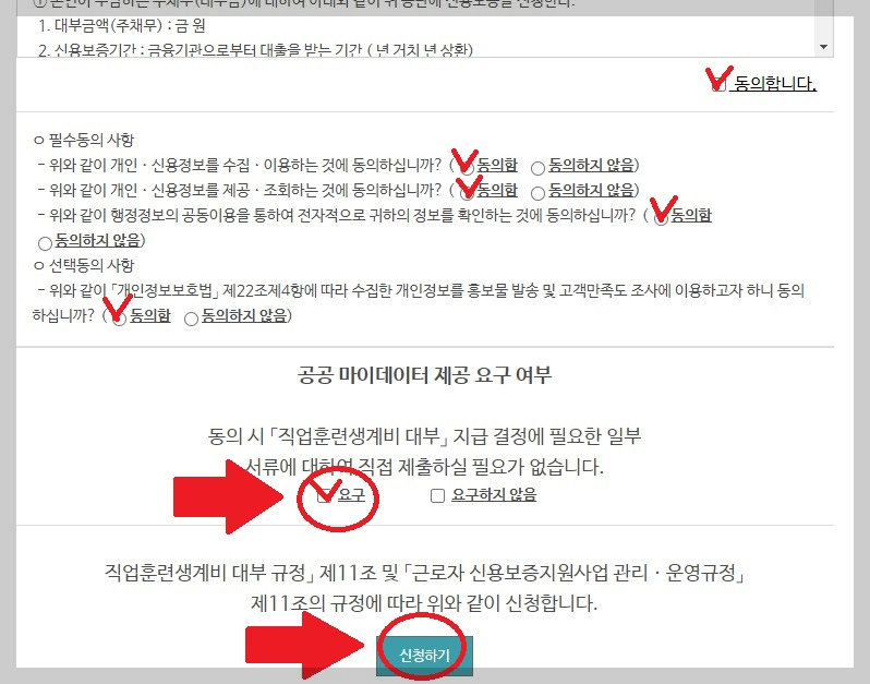 공공 마이데이터 제공 요구 여부에 동의하시면 필요한 서류를 직접 제출하지 않아도, 관련기관에서 자동으로 제출됩니다.