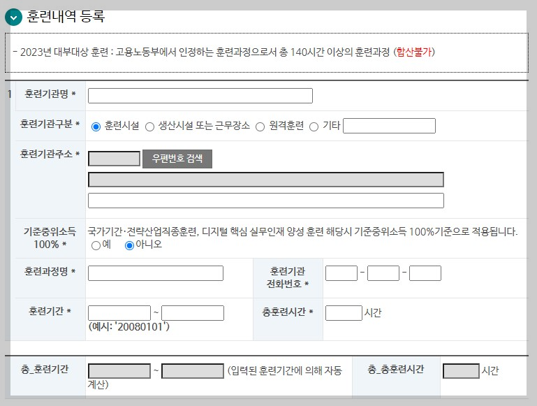 대출을 받기 위해서는 아래의 대상 훈련에 총 140시간 이상 참여 중이며, 대출 신청일 기준으로 잔여 훈련기간이 15일 이상이어야 합니다.