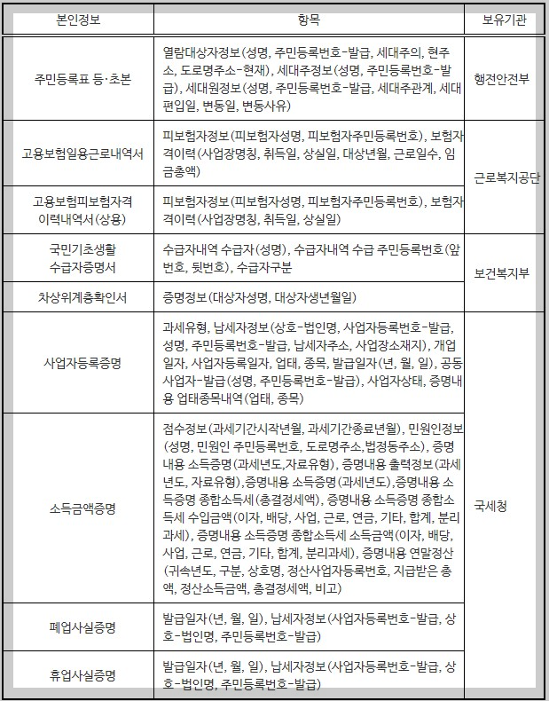 공공 마이데이터 제공 요구 여부에 동의하시면 필요한 서류를 직접 제출하지 않아도, 관련기관에서 자동으로 제출됩니다.