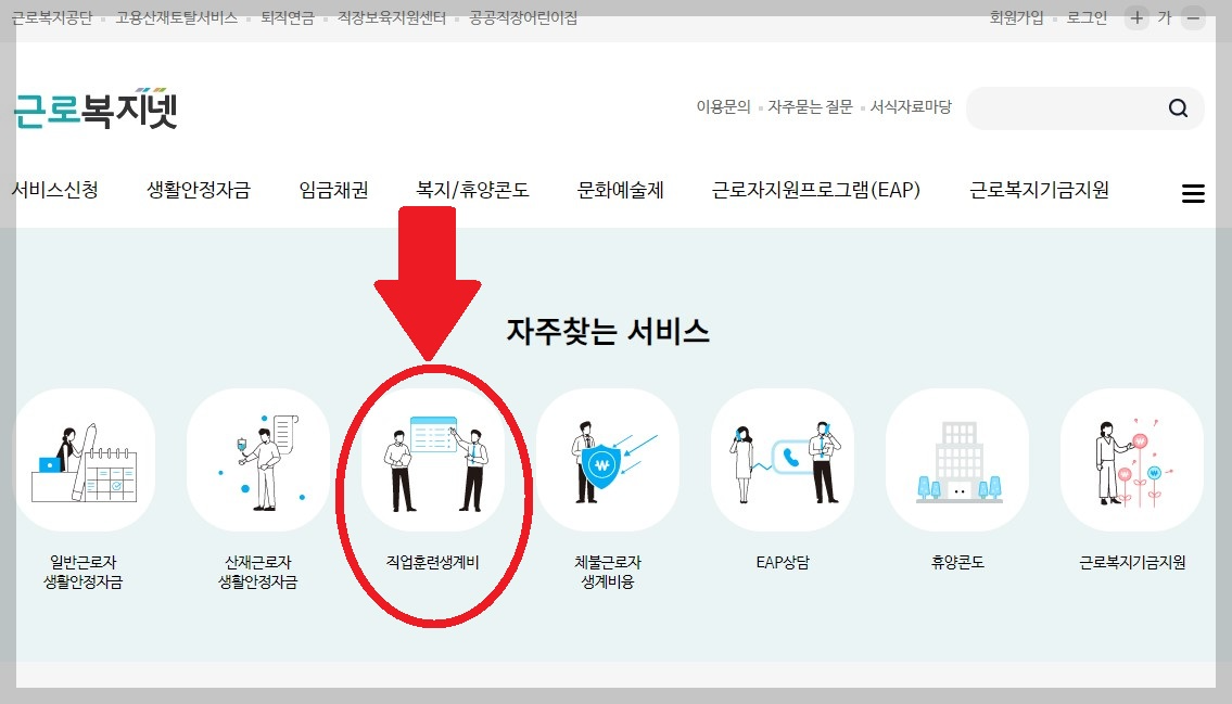 온라인 신청은 근로복지넷 홈페이지에서 신청할 수 있습니다. 회원가입이나 로그인은 필요하지 않습니다.