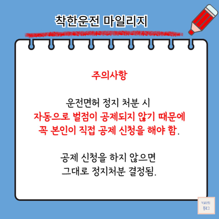 ★ 단, 운전면허 정지 처분 시 자동으로 벌점이 공제되지 않기 때문에 꼭 본인이 직접 공제 신청을 해야 합니다. 공제 신청을 하지 않으면 그대로 정지처분이 결정됩니다. ★