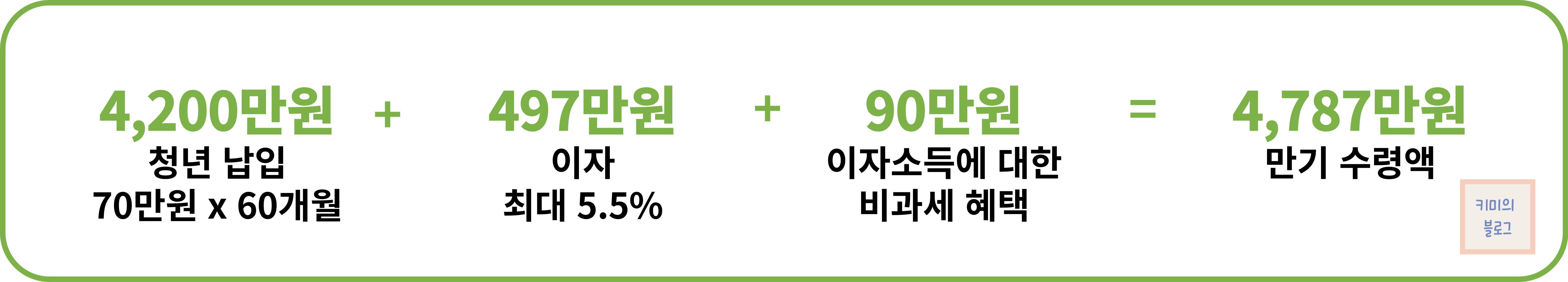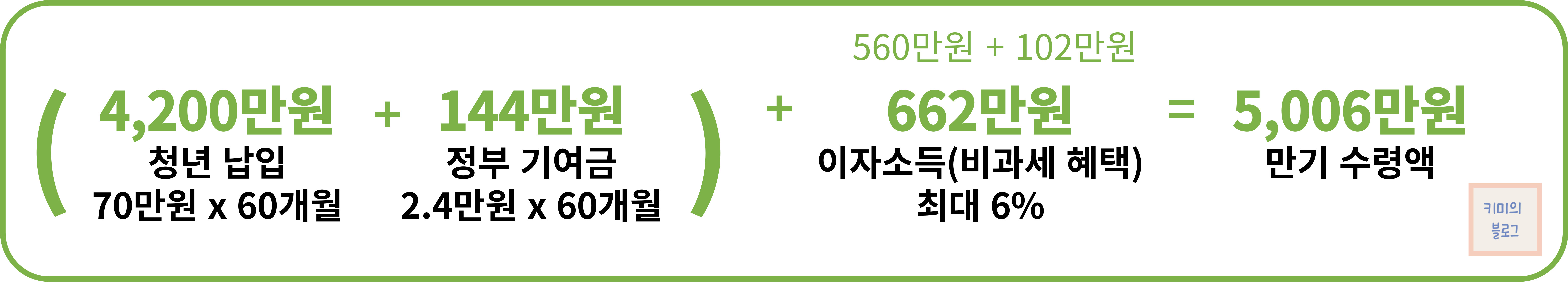 • 청년 납입금과 정부기여금의 이자(최대 6%) = 560만원
