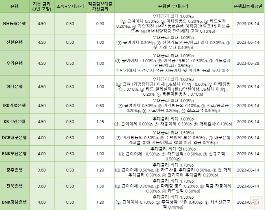그리고 은행별로 최대 1.0%까지 우대금리를 받을 수 있습니다.