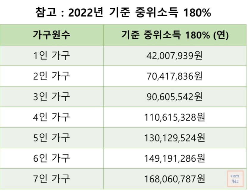 • 가구소득 조건 : 기준 중위소득 180% 이하