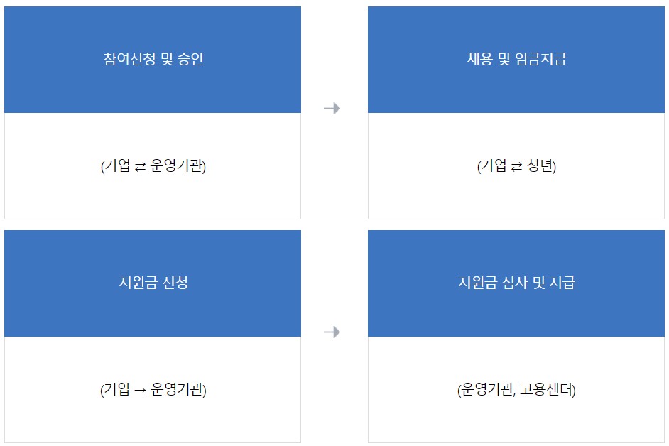 이 사업은 청년 개인이 신청할 수 없으며, 기업에서 참여신청을 해야 합니다. 신청 절차는 다음과 같습니다.
