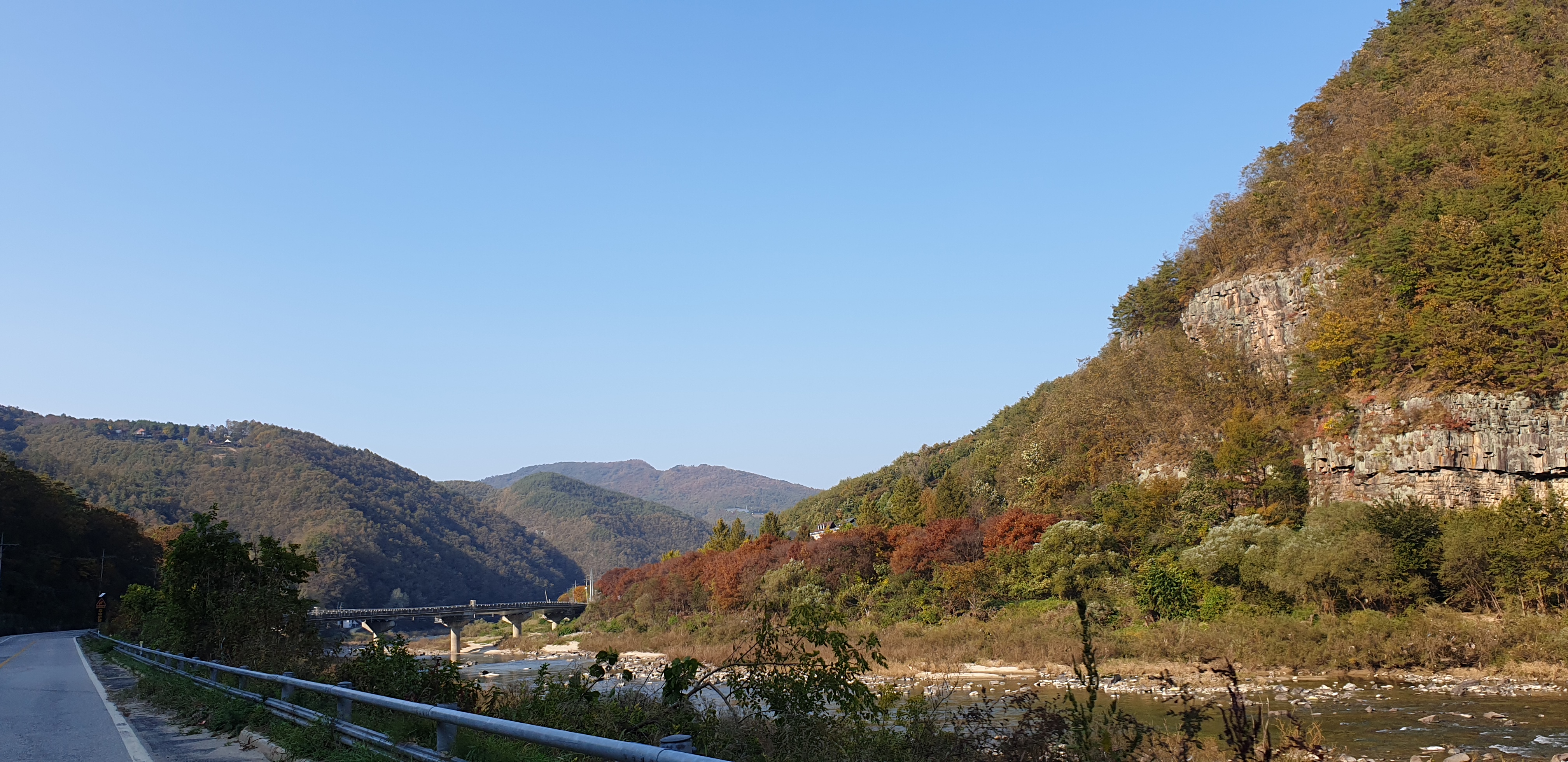 봉성초등학교에서 낙동강을 만나는 지점까지는 한적한 시골길 드라이브 코스입니다. 양 옆으로 산세를 구경하며 여유로운 드라이브를 즐길 수 있습니다.