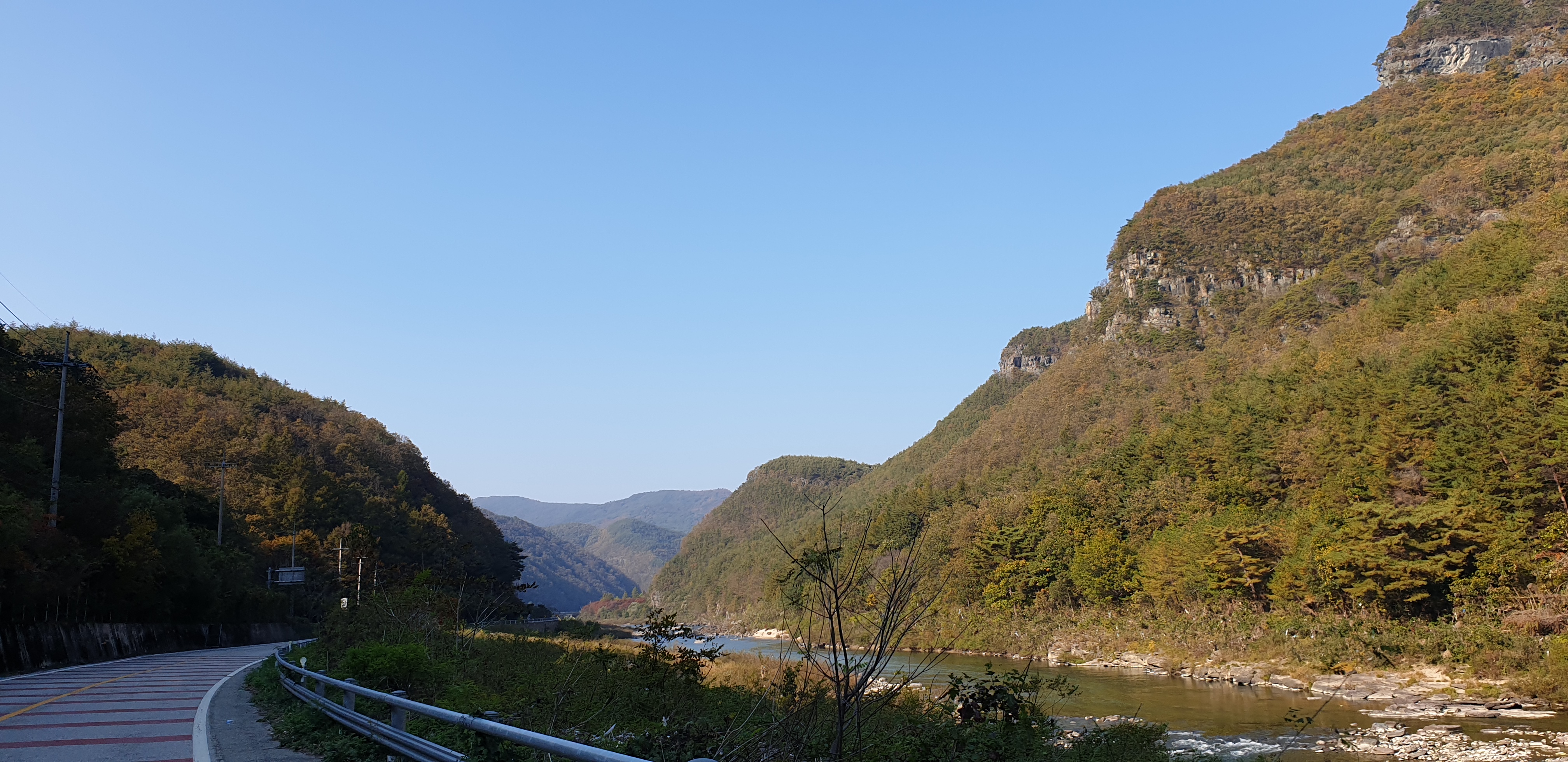저는 '봉성초등학교'에서 '청량산 휴게소'까지 왕복으로 드라이브했습니다. 왕복 1시간 정도 걸리고, 낙동강 줄기를 끼고 청량산 전경을 구경하기에 딱 좋은 코스였습니다.
