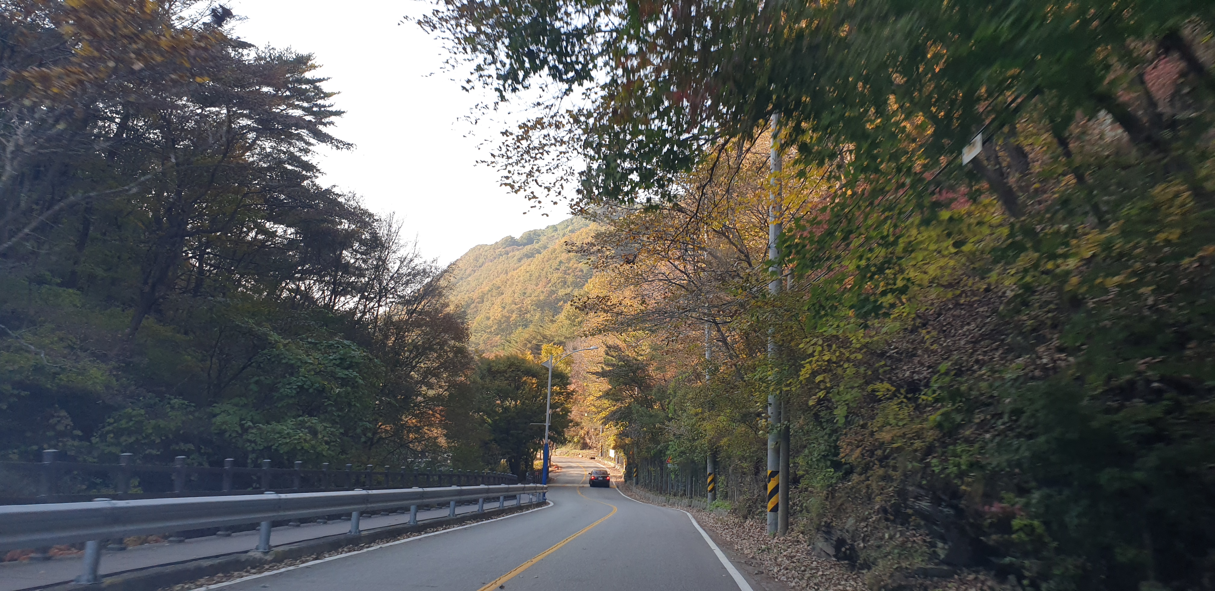 아래 사진은 청량산 도립공원 매표소를 지나 청량산자락을 올라가는 도로입니다. 도로 중간중간 주차장이 있고, 도로변에는 보도가 조성되어 있어서 가벼운 산책도 가능합니다.