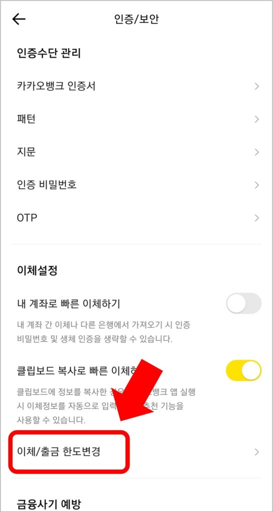 카카오뱅크 이체한도 및 출금한도 변경 방법