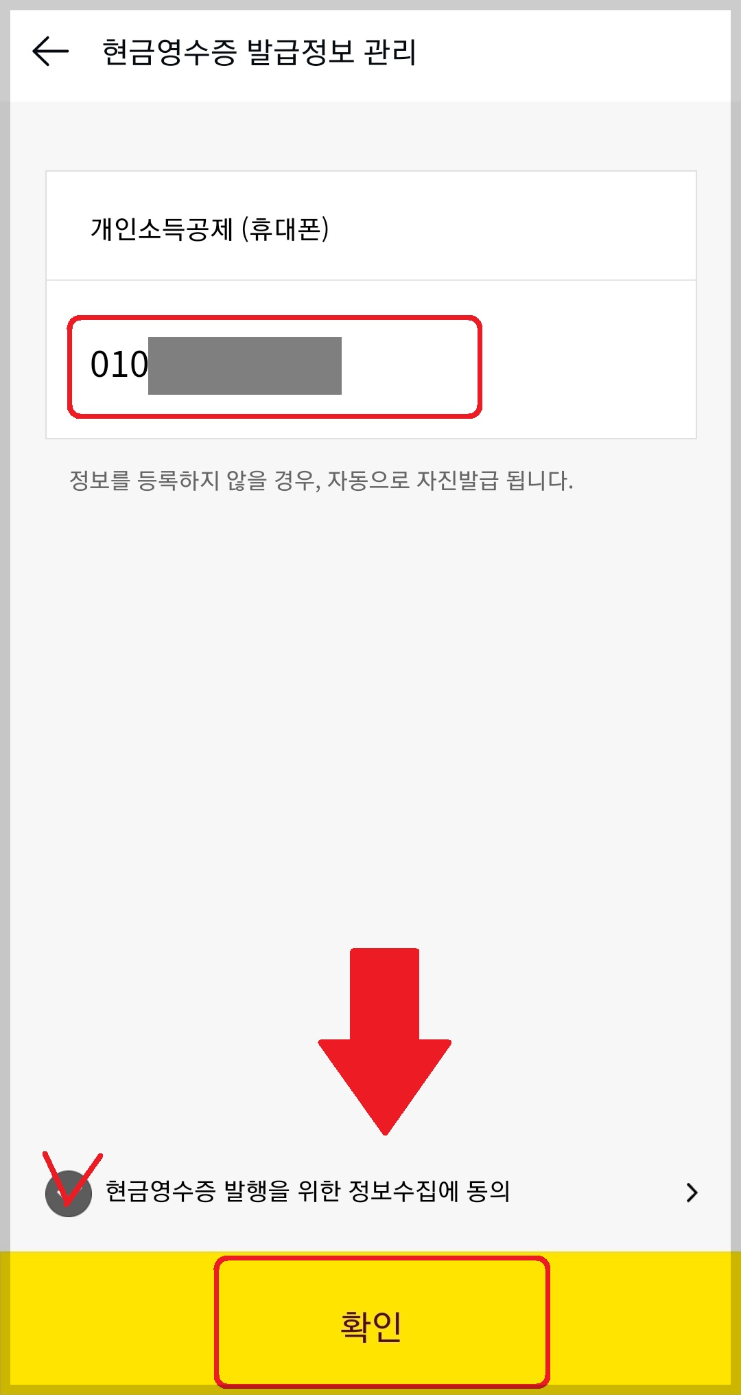 8. 휴대폰 번호 또는 사업자번호나 현금영수증 카드 번호를 입력합니다.