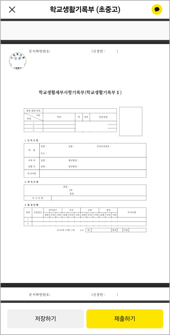 발급한 생기부 다시 조회