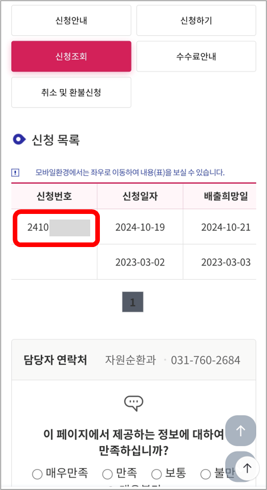 온라인으로 배출 신청한 [신청번호]를 종이에 적어서 폐기물에 붙인 뒤,