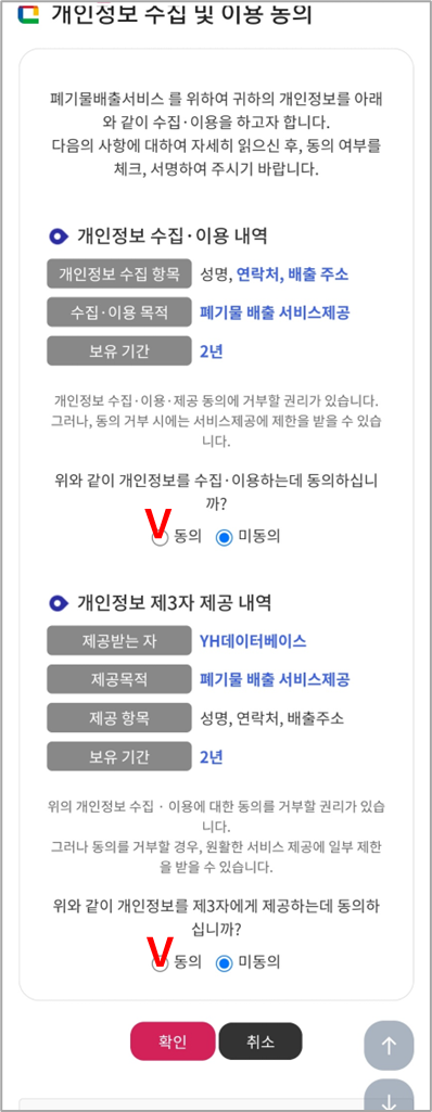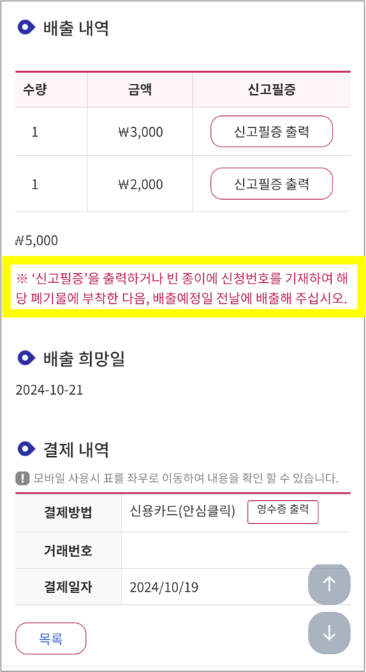 온라인 신청을 마친 후, 폐기물을 집 밖에 내놓아야 합니다.