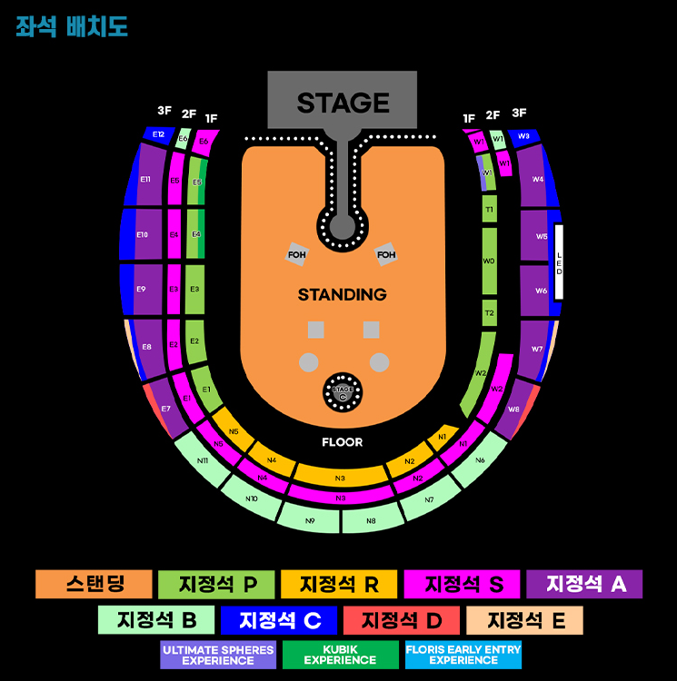 티켓 가격은 좌석의 위치와 등급에 따라 차이가 있습니다.