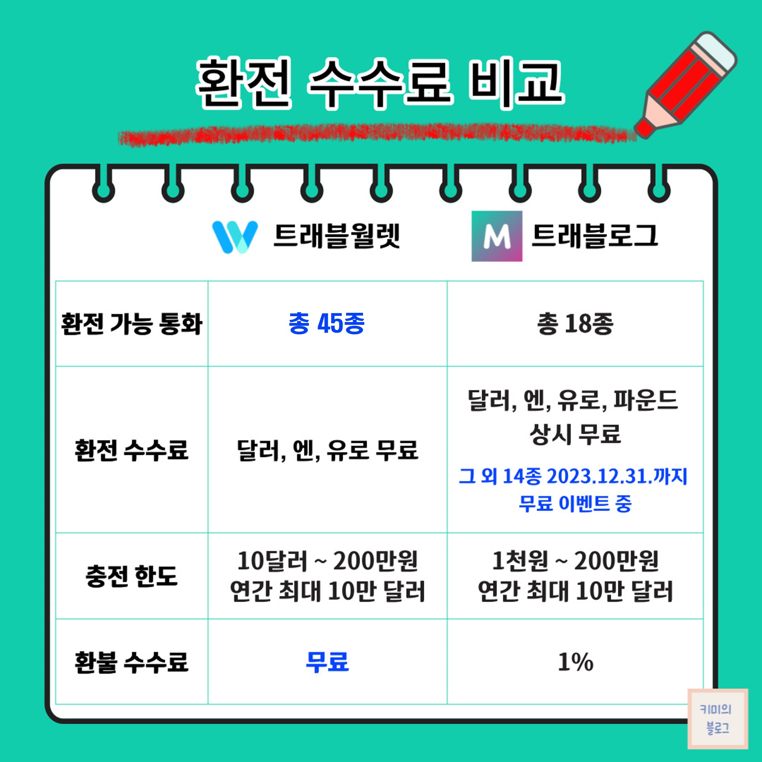 영국, 뉴질랜드, 베트남, 인도네시아, 중국, 태국, 홍콩 등을 여행하신다면 환율 우대 이벤트를 자주 하는 트래블로그를 추천해 드립니다. 그 외의 국가를 가신다면 취급 통화가 다양한 트래블월렛이 좋습니다.