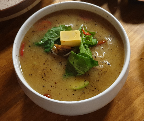 위에 버터 한 조각이 얹어서 나오는데, 버터를 녹이지 않은 채로 국물을 맛보면 깔끔하고 깊은 맛을 느낄 수 있습니다. 그리고 버터를 국물 속에 넣어서 녹이면, 한식에 양식의 느낌이 더해집니다. 굉장히 매력 있고 끌리는 맛이었습니다.