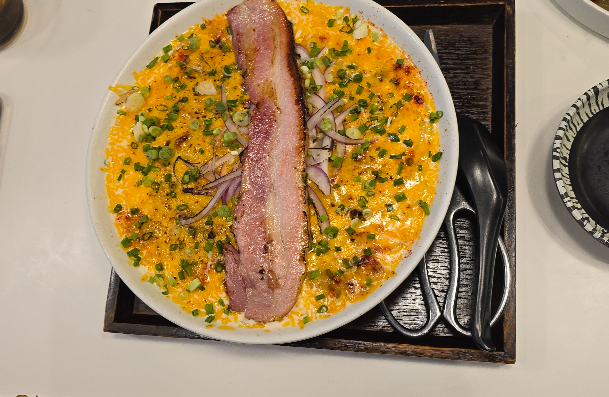 매콤한 베이컨 크림 우동이 있어요.