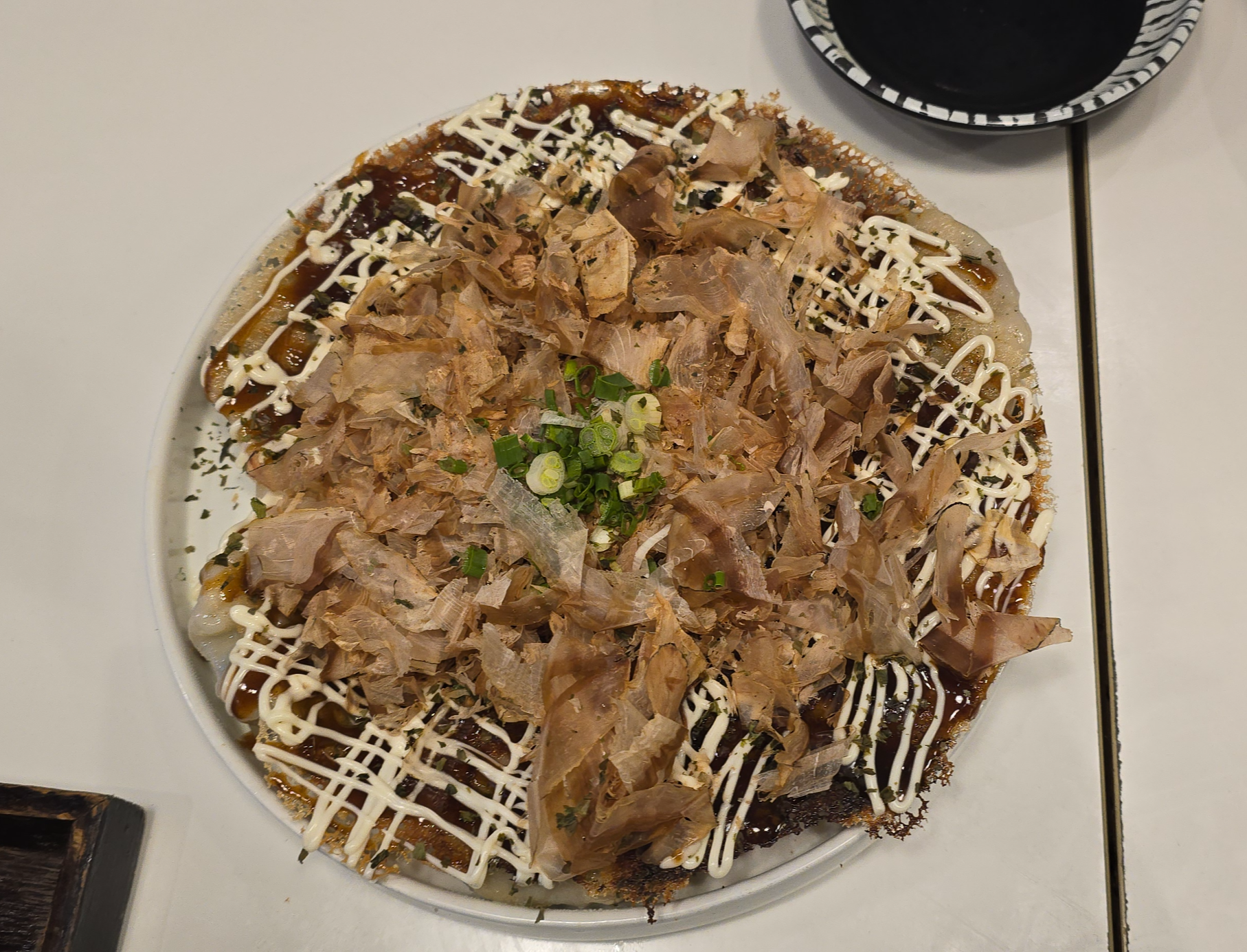 그리고 교자 위에 오꼬노미야끼처럼 소스와 마요네즈, 가츠오부시를 듬뿍 얹어서