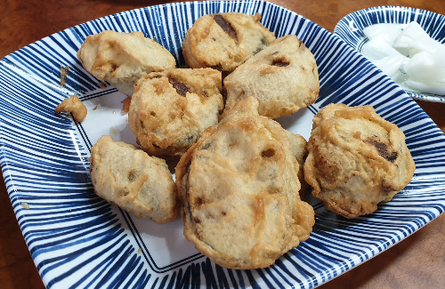 생긴 모습과 달리 바삭한 튀김 속에 촉촉한 가지, 그리고 육즙이 가득한 소가 들어있습니다. 튀김이지만 씹을 때마다 가지에서 채즙이 배어 나오기 때문에 느끼하지 않습니다.