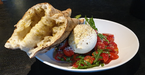물론 피자도 모두 맛있지만 의외로 샐러드도 참 맛있었습니다. 카프레제 부라따 샐러드는 화덕빵을 곁들인 것과 빵이 없는 것 두 가지가 있는데 꼭 빵을 함께 주문하시길 추천합니다. 토마토, 루꼴라, 부라따 치즈에 화덕빵이 같이 나옵니다. 사진에서 보시는 것처럼 빵은 속이 빈 형태로 구워지는데 빈속에 치즈와 허브가루 등을 뿌려서 이 빵만 먹어도 고소하고 향긋한 게 정말 맛있었습니다. 그리고 이 빵 사이에 샐러드를 끼워서 먹으면 신선한 샐러드 피자 같은 느낌도 납니다.