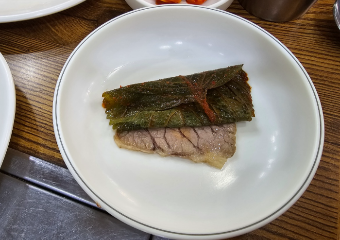 수육을 주문하면 추가 반찬으로 깻잎을 주시는데, 이 깻잎과 수육을 함께 먹는 것도 또 맛있습니다.