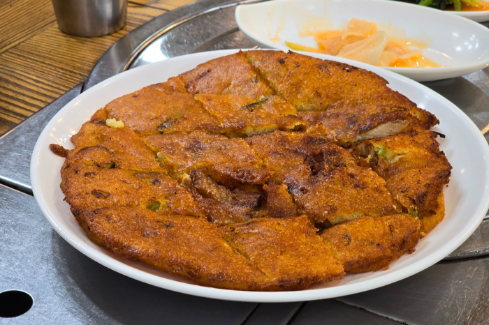 육선생 면제자에 방문하면 꼭 녹두전을 함께 주문합니다. 녹두 100%로 바삭하게 부쳐서 굉장히 고소하고 맛있습니다. 냉면과 함께 먹기에 딱 좋습니다.