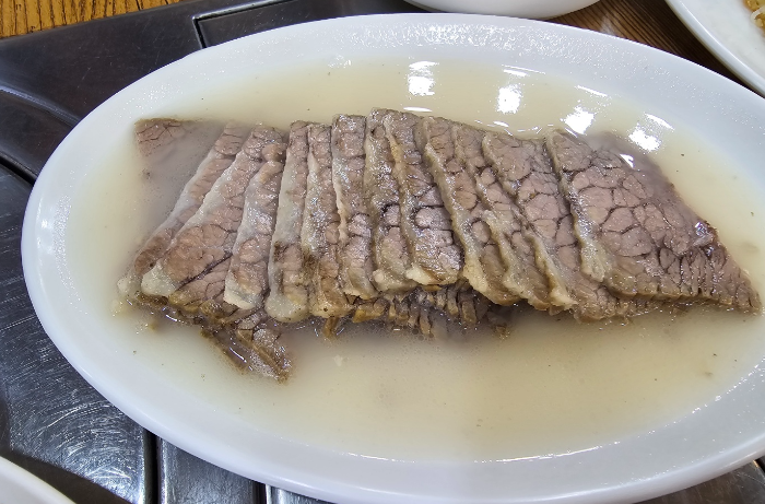 가끔 수육이나 제육도 주문합니다. 이번에는 수육을 주문해 보았습니다. 부드럽게 삶아진 소고기가 육수와 함께 담겨서 나옵니다. 고기가 굉장히 부드럽고, 육수도 진하고 녹진합니다.