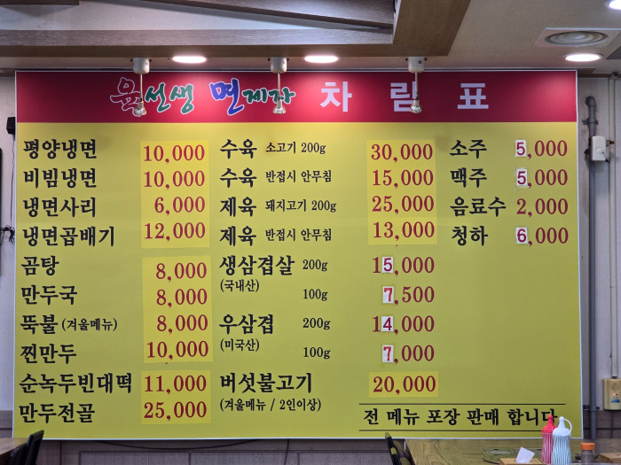육선생 면제자는 맛도 맛이지만 착한 가격이 또 기분을 좋게 합니다. 요즘 서울은 평양냉면 14,000~17,000원 하는데, 여기는 무려 냉면 한 그릇에 만원입니다. 평택 시청 쪽이라 물가가 비교적 저렴한 면도 있지만 그걸 감안해도 가격이 굉장히 저렵합니다.