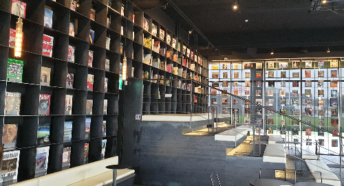 내부는 블랙을 메인으로 인테리어가 되어 있는데 한쪽은 통유리로 햇빛이 환하게 들어오고, 맞은편은 책장과 계단식 좌석이 있어서 사진을 찍기에도 참 좋습니다.