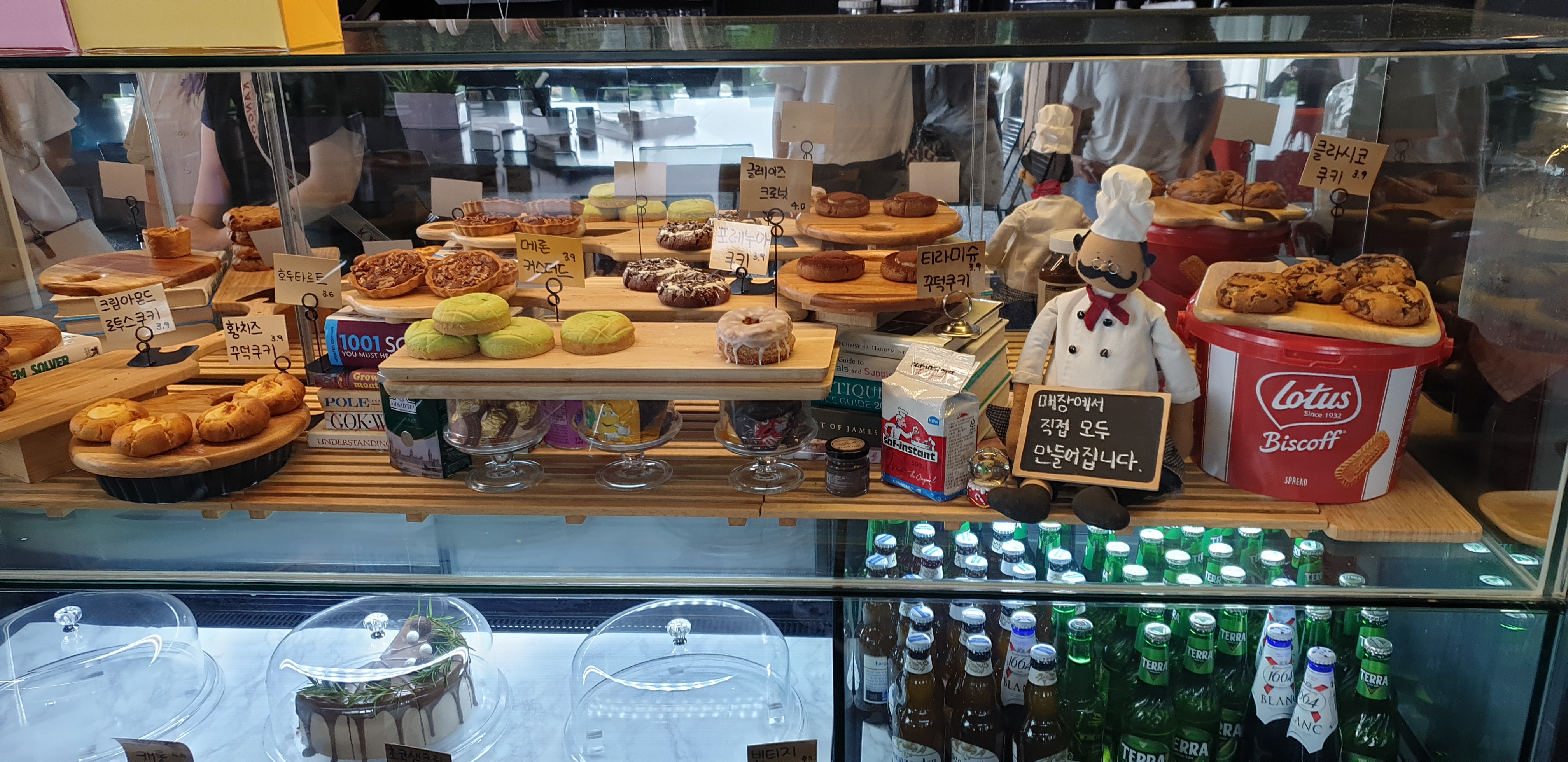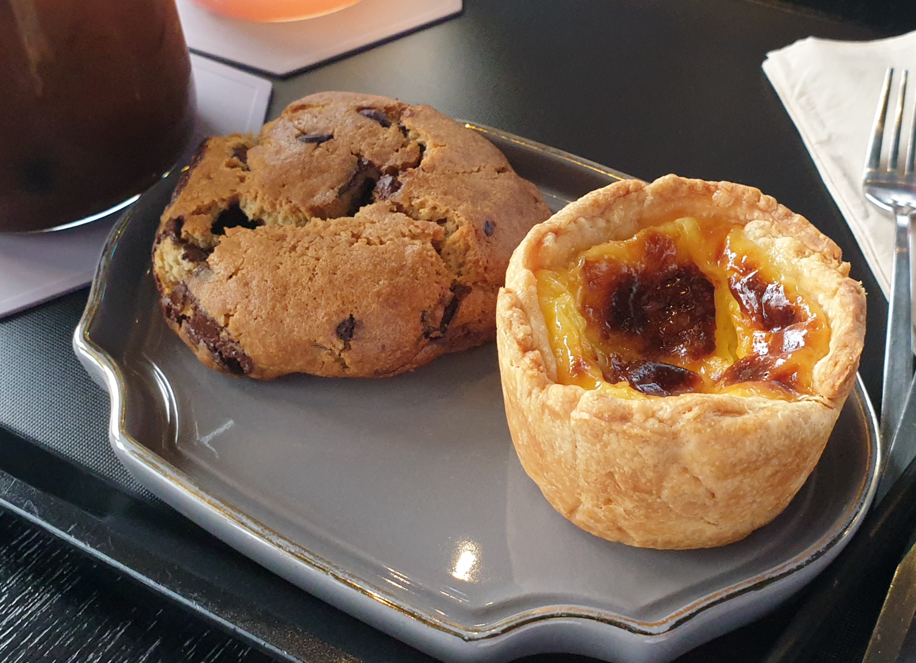 땅콩버터와 초콜릿칩이 들어 있는 글라시코 쿠키와, 고소한 에그타르트도 추천해 드립니다.