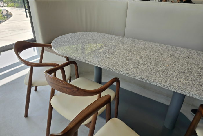 건물 안에서 연결되는 중정도 있는데요. 중정에도 테이블이 있어서 봄이나 가을엔 야외 테이블에 앉으면 좋을 것 같습니다.