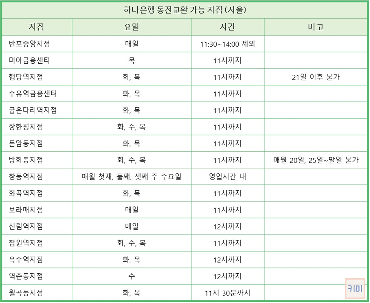 2024.07.22 - [생활팁/금융팁] - 하나은행 동전교환 가능한 지점 및 시간 총정리(수도권)