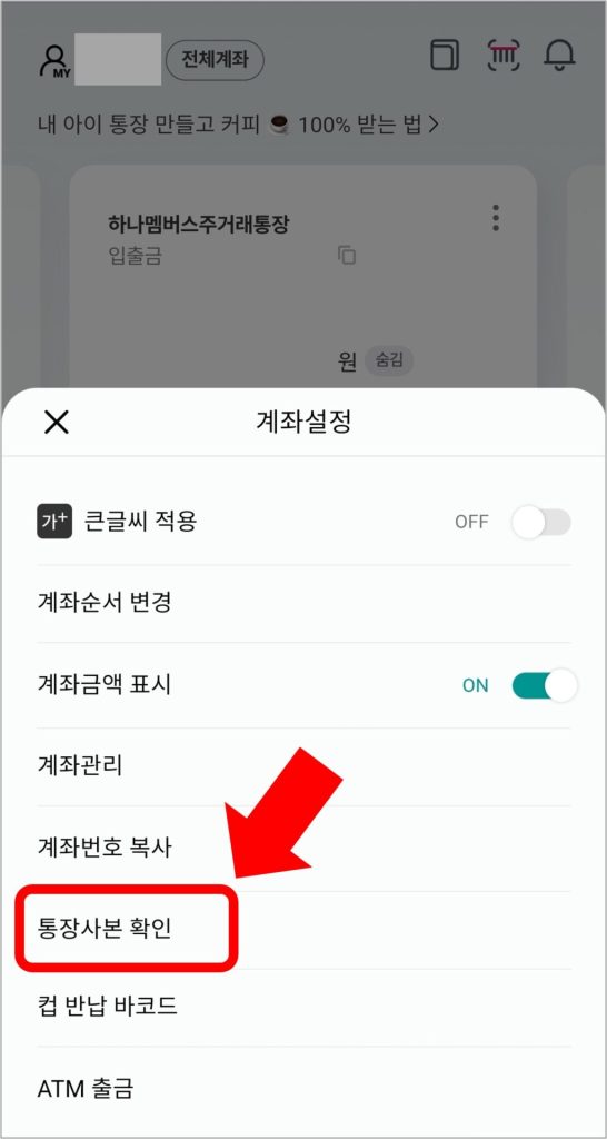 [계좌설정]에서 [통장사본 확인]을 선택합니다.